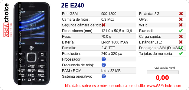 Datos del móvil 2E E240 en tu página