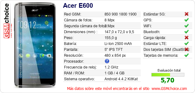 Datos del móvil Acer E600 en tu página