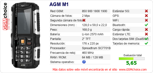 Datos del móvil AGM M1 en tu página