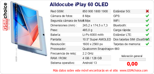 Datos del móvil Alldocube iPlay 60 OLED en tu página