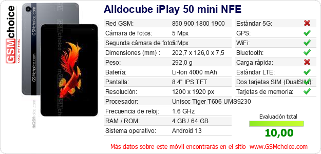 Datos del móvil Alldocube iPlay 50 mini NFE en tu página