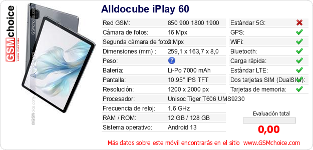 Datos del móvil Alldocube iPlay 60 en tu página