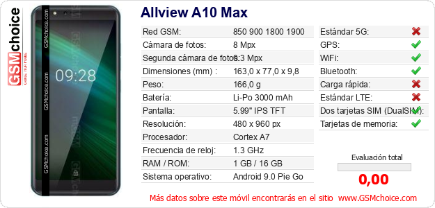 Datos del móvil Allview A10 Max en tu página