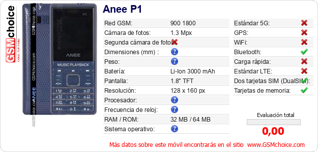 Datos del móvil Anee P1 en tu página