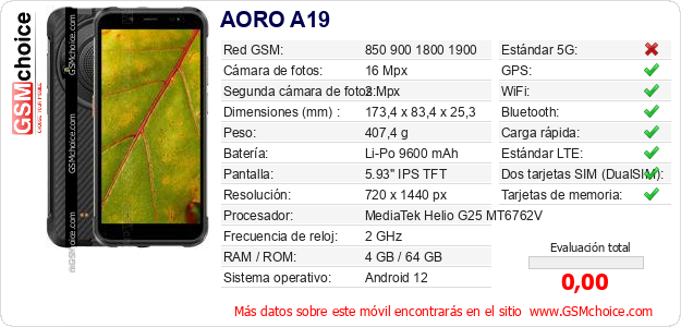 Datos del móvil AORO A19 en tu página