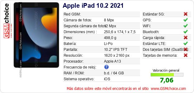 Datos del móvil Apple iPad 10.2 2021 en tu página
