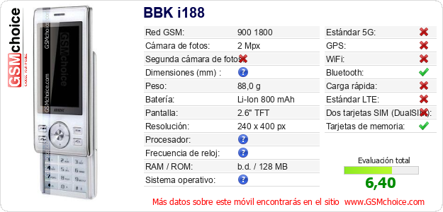 Datos del móvil BBK i188 en tu página