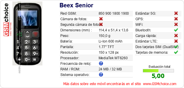 Datos del móvil Beex Senior en tu página