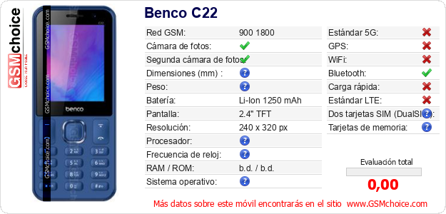 Datos del móvil Benco C22 en tu página