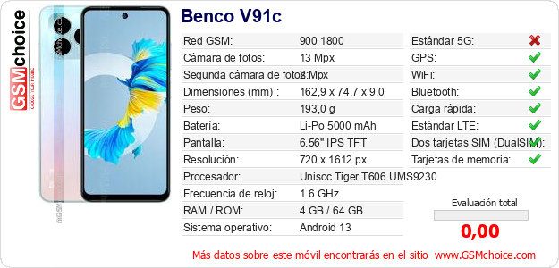 Datos del móvil Benco V91c en tu página