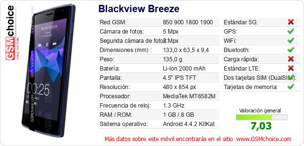 Datos del móvil Blackview Breeze en tu página