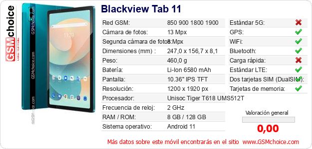Datos del móvil Blackview Tab 11 en tu página