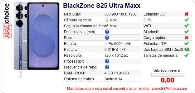 Datos del móvil BlackZone S25 Ultra Maxx en tu página