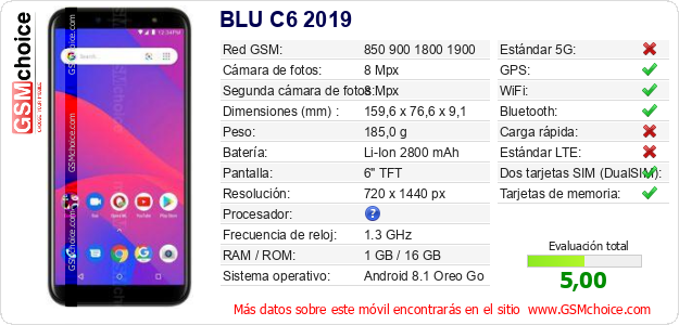 Datos del móvil BLU C6 2019 en tu página