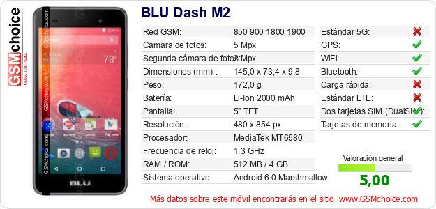 Datos del móvil BLU Dash M2 en tu página