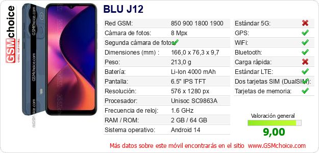 Datos del móvil BLU J12 en tu página