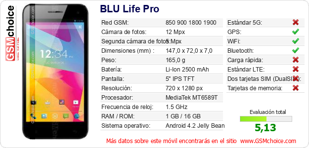 Datos del móvil BLU Life Pro en tu página
