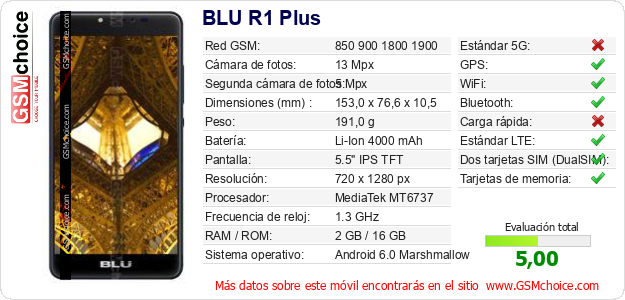 Datos del móvil BLU R1 Plus en tu página