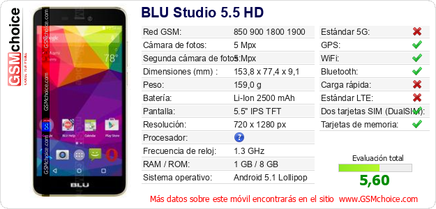 Datos del móvil BLU Studio 5.5 HD en tu página