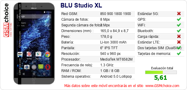 Datos del móvil BLU Studio XL en tu página