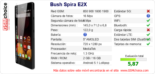 Datos del móvil Bush Spira E2X en tu página