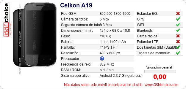 Datos del móvil Celkon A19 en tu página