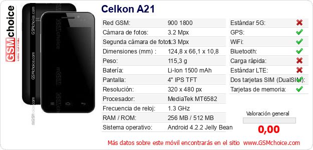 Datos del móvil Celkon A21 en tu página
