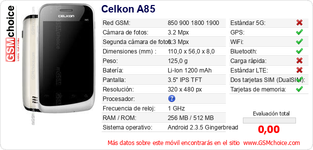 Datos del móvil Celkon A85 en tu página