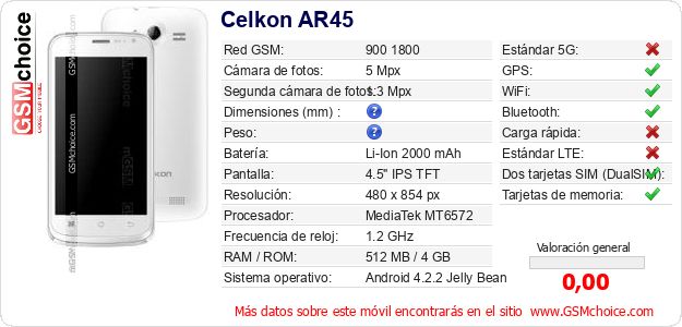 Datos del móvil Celkon AR45 en tu página