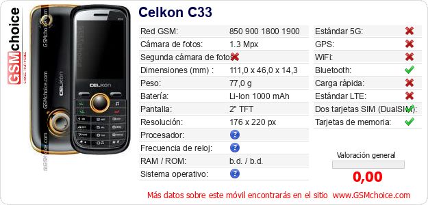 Datos del móvil Celkon C33 en tu página