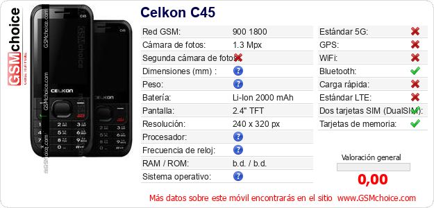 Datos del móvil Celkon C45 en tu página