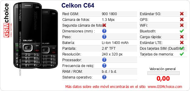 Datos del móvil Celkon C64 en tu página