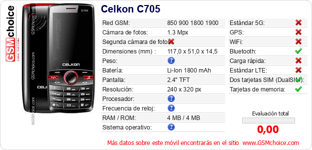 Datos del móvil Celkon C705 en tu página
