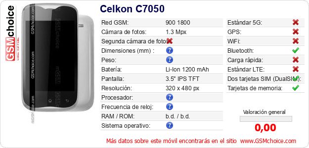 Datos del móvil Celkon C7050 en tu página