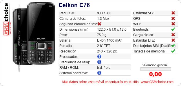 Datos del móvil Celkon C76 en tu página