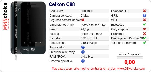 Datos del móvil Celkon C88 en tu página
