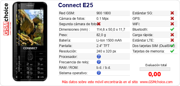 Datos del móvil Connect E25 en tu página