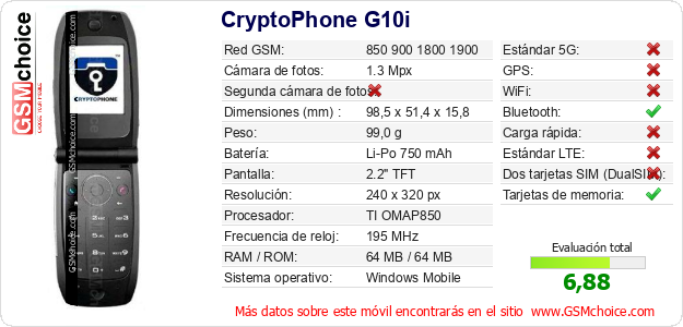 Datos del móvil CryptoPhone G10i en tu página