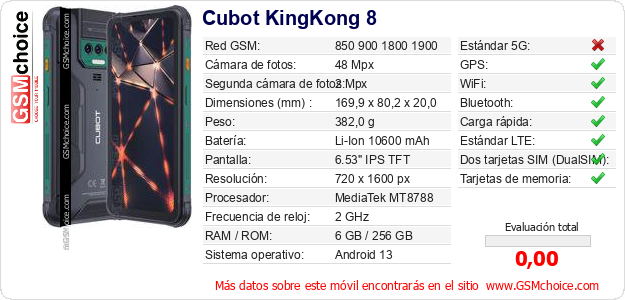 Datos del móvil Cubot KingKong 8 en tu página