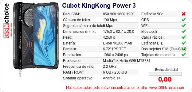 Datos del móvil Cubot KingKong Power 3 en tu página