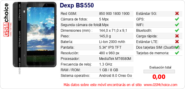 Datos del móvil Dexp BS550 en tu página
