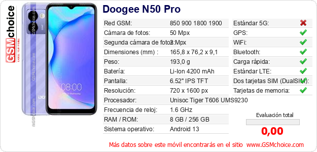 Datos del móvil Doogee N50 Pro en tu página