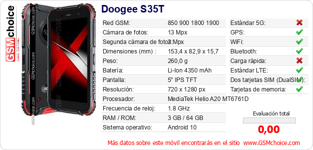 Datos del móvil Doogee S35T en tu página