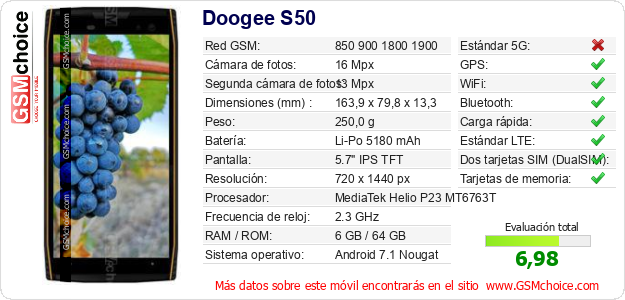 Datos del móvil Doogee S50 en tu página