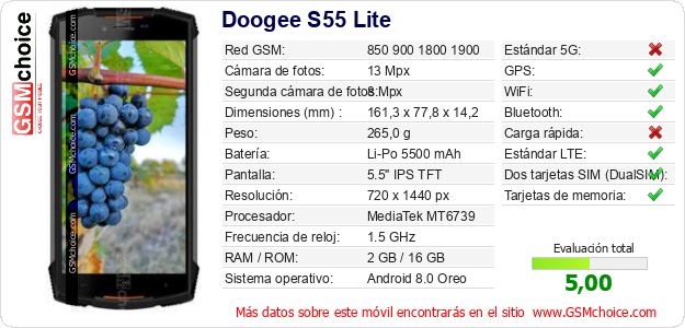 Datos del móvil Doogee S55 Lite en tu página