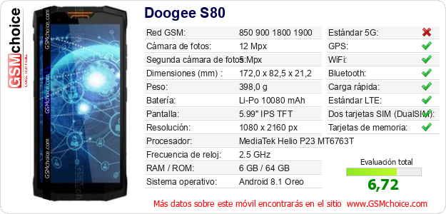 Datos del móvil Doogee S80 en tu página