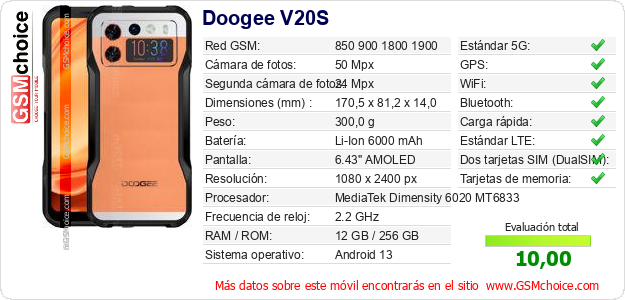 Datos del móvil Doogee V20S en tu página