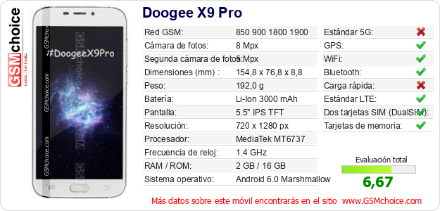 Datos del móvil Doogee X9 Pro en tu página