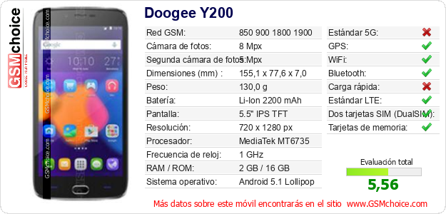 Datos del móvil Doogee Y200 en tu página