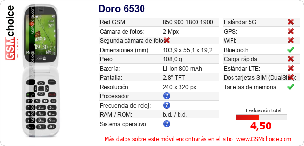 Datos del móvil Doro 6530 en tu página